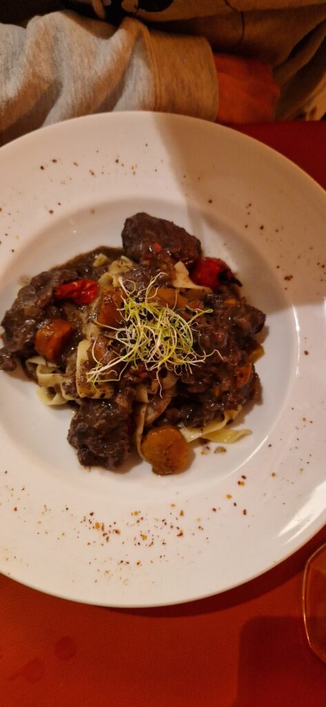Nadat we de koelkast op de kamer (nummer 3) hadden gezet hebben we op bed gelegen, een biertje en een paar plakjes chorizo genuttigd en zijn we gaan eten.